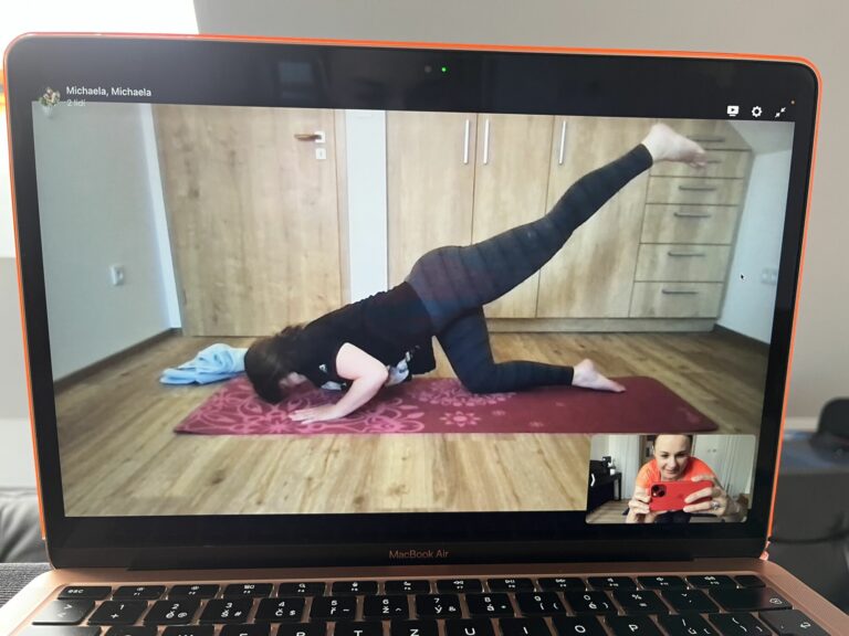 S Míšou se známe víc než 2 roky, potkáváme se pravidelně skrze obrazovku počítače. Začaly jsme spolu cvičit za lockdownu, když byla ve 2. trimestru těhotenství, a prošly jsme touto aktivnější těhotenskou fází přes ladění se na porod pomocí dechových a relaxačních cvičení, období šestinedělí a jemné aktivace a pohybové rekonvalescence, několik měsíců pozvolného návratu do formy až k tomu, že jedeme bomby v podobě běhu a intervalového tréninku!